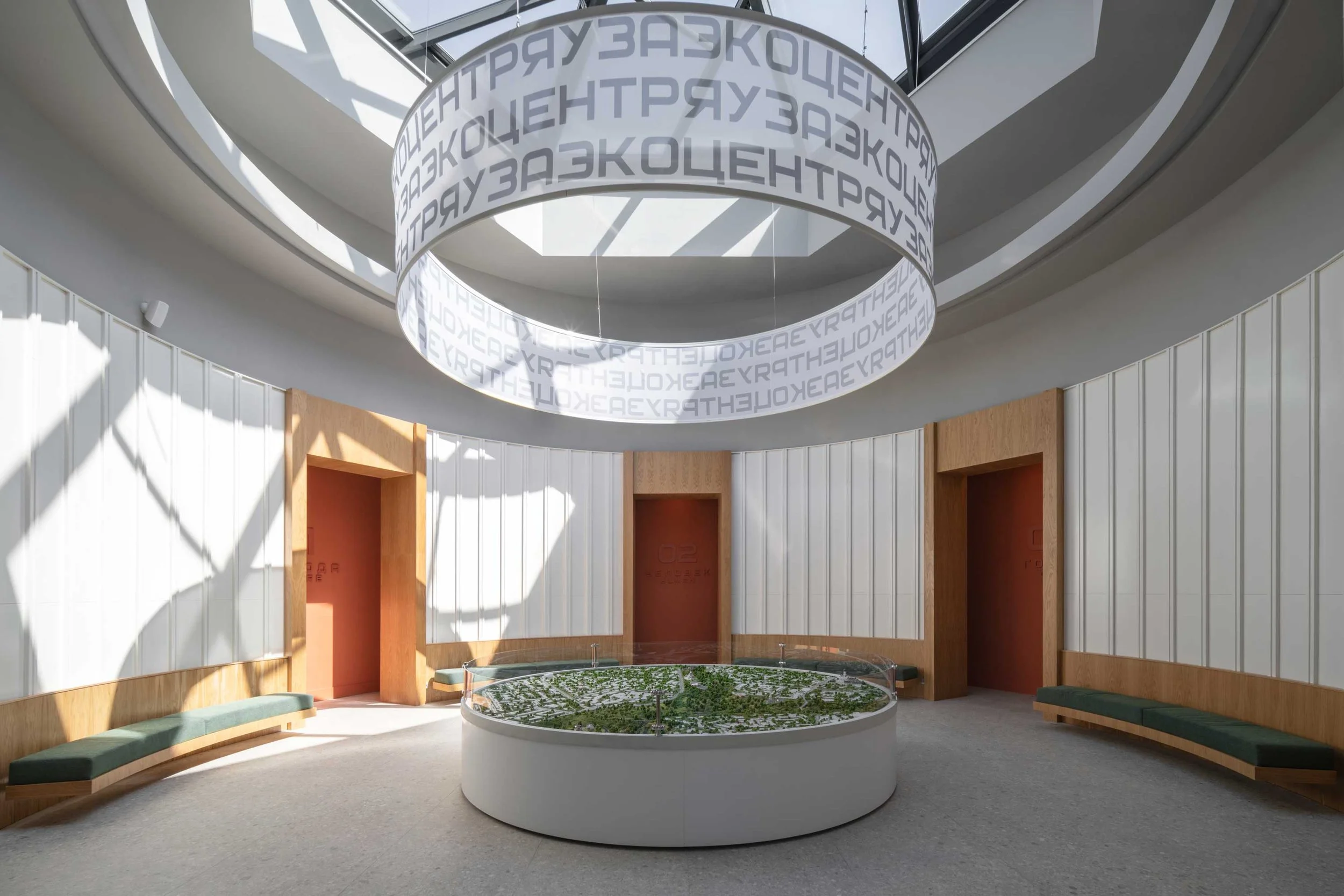 Архитектурная концепция здания, разработанная ПСК «Азурит» совместно с Глебом Богомоловым, изначально вела диалог с ландшафтом, а наша задача заключалась в создании интерьера, который стал бы органичным продолжением этой идеи — проводником в мире экологии и просвещения.
